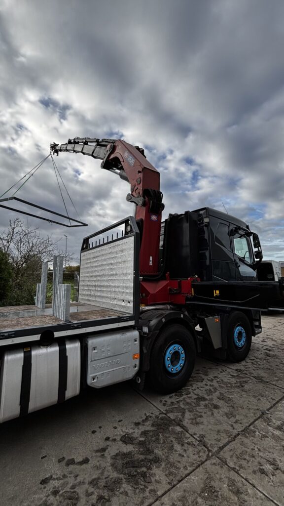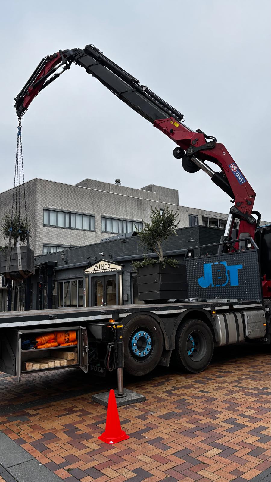 JBT Services beschikt over een 85tm autolaadkraan. De vrachtwagen is voorzien van een platte laadbak voor het transporteren van diverse materialen.